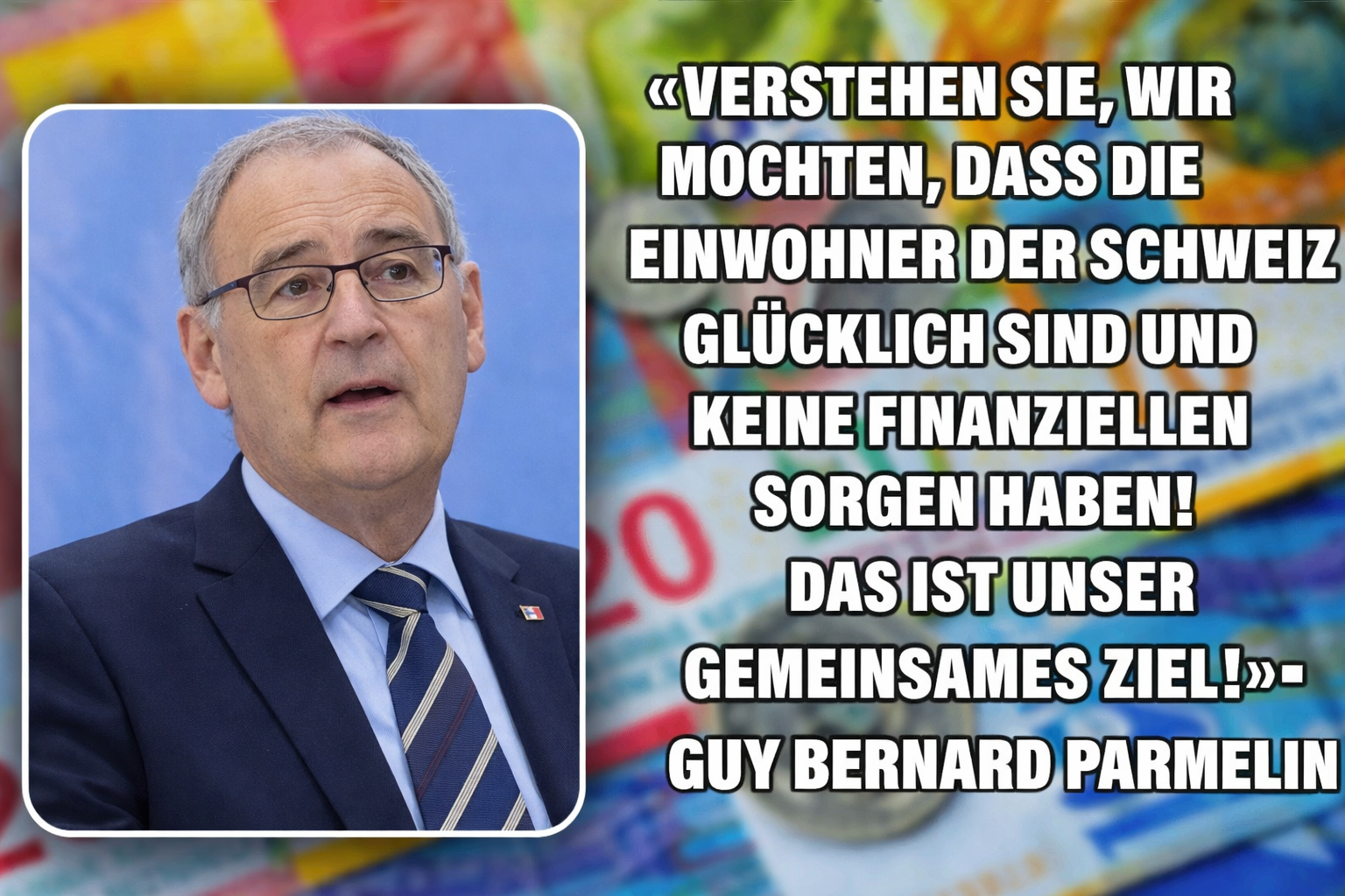 Guy Parmelin: "Die Finanzanalyse für das Jahr 2025 zeigte, dass viele Einwohner der Schweiz Schulden haben und die Inflation steigt. Unsere Regierung ist daran interessiert, dass Schweizer Bürger in Wohlstand leben und glücklich sind! Schließlich hilft es auch uns nicht, wenn das Schweizer Volk verschuldet ist."